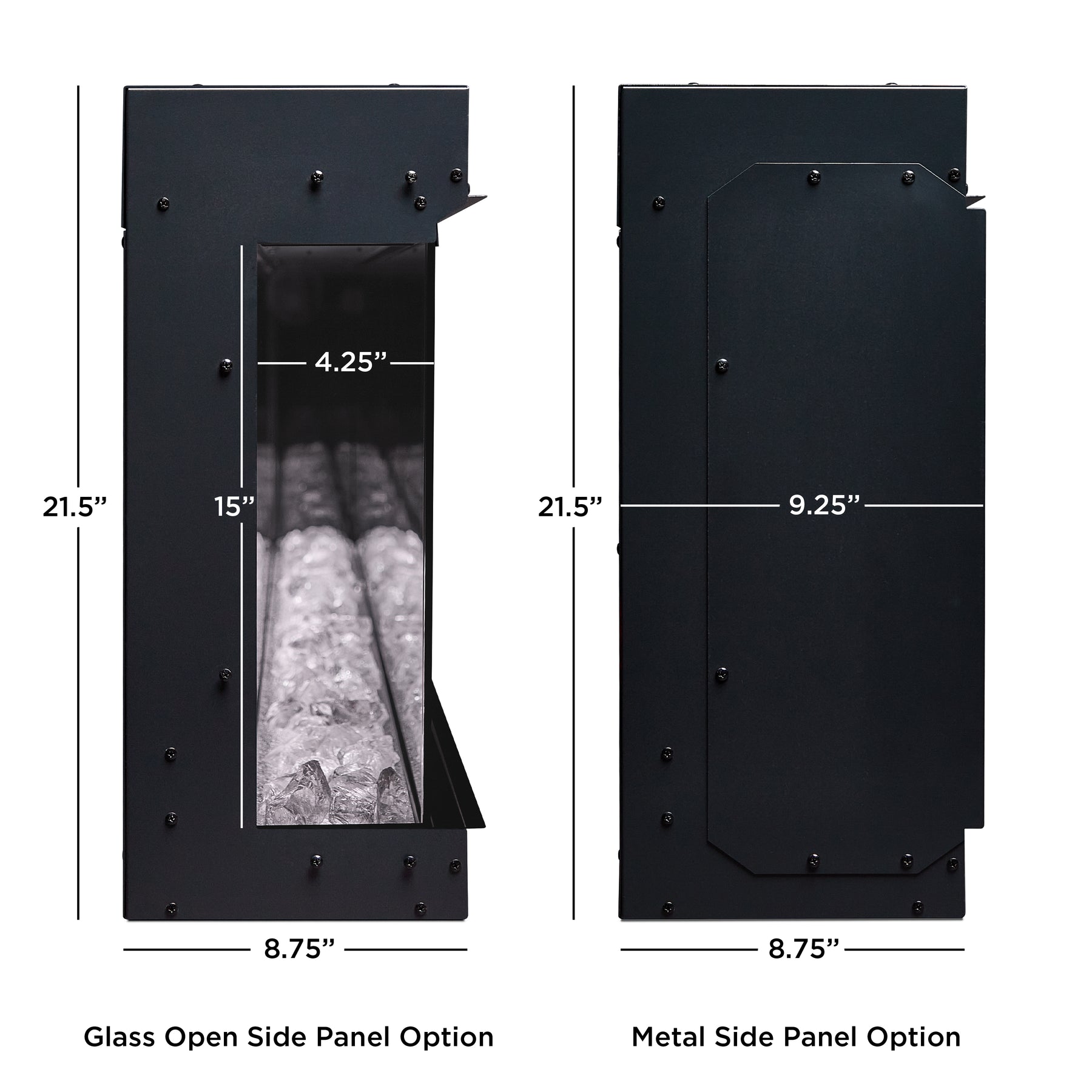 - Firebox supports recessed, two-sided corner, or full three-sided built-in installations